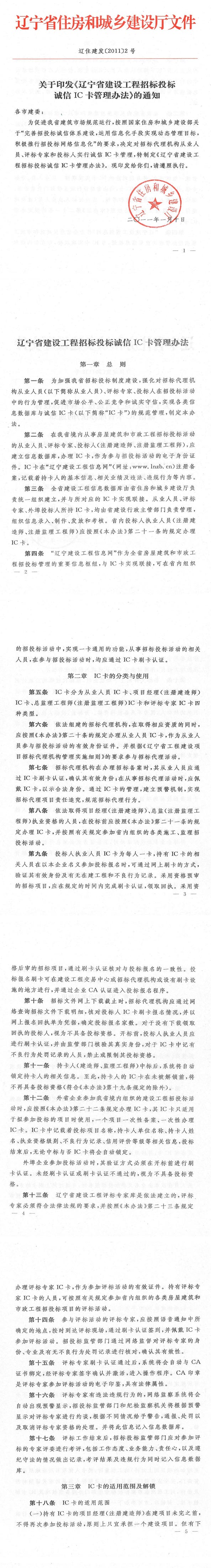 【概要描述】关于印发《辽宁省建设工程招标投标诚信IC卡管理办法》的通知