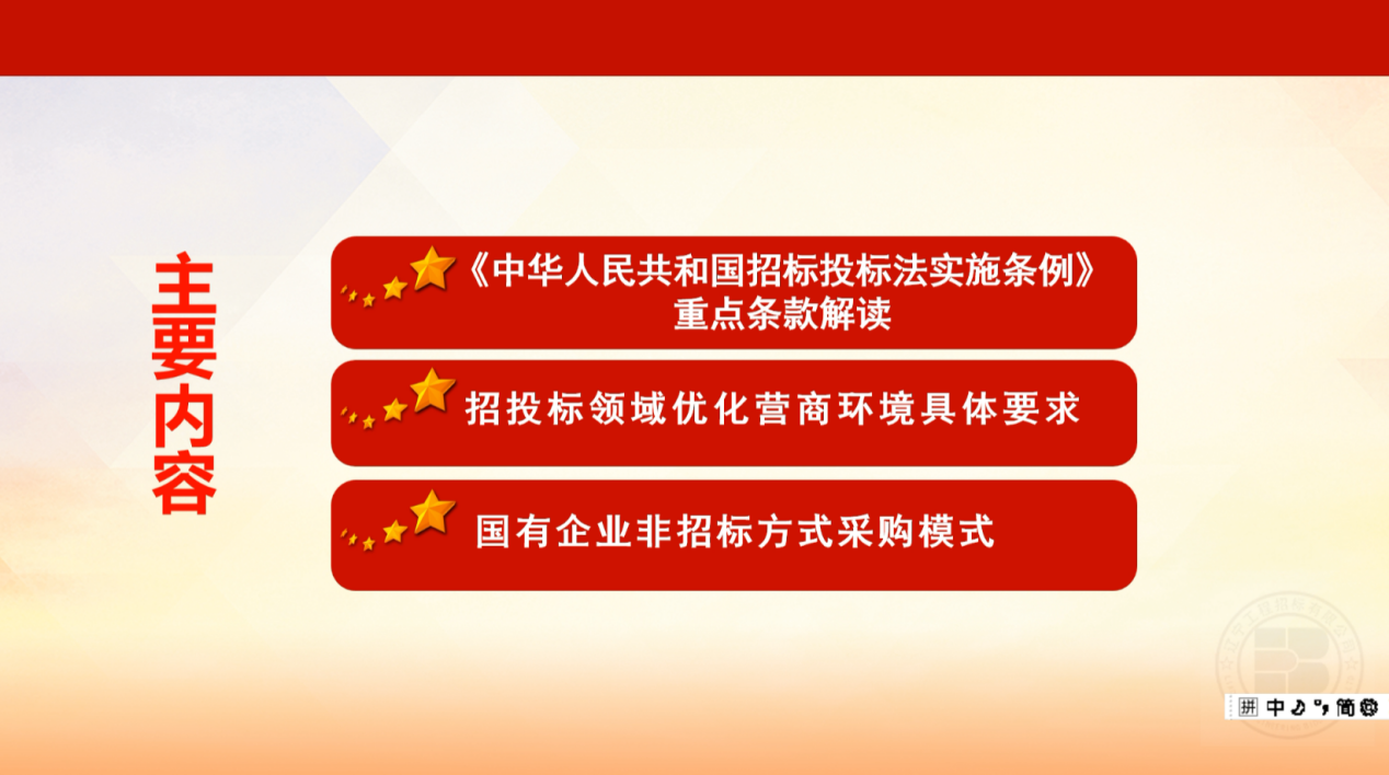 本次培训由企业管理部李乾坤部长主讲,主要内容是《中华人民共和国招标投标法实施条例》重点条款解读、招标投标领域优化营商环境具体要求和国有企业非招标方式采购模式。从招标采购实际工作出发,围绕优化营商环境的具体要求,利用自身丰富经验和专业技术力量进行相关实务讲解,深入解读政策法规执行中的要点和难点,助力采购人加强内控管理,防范招标采购风险。培训会议热烈有序,大家充分交流了各项政策要点和工作实务,共同为保障复工复产和优化营商环境夯实基础。