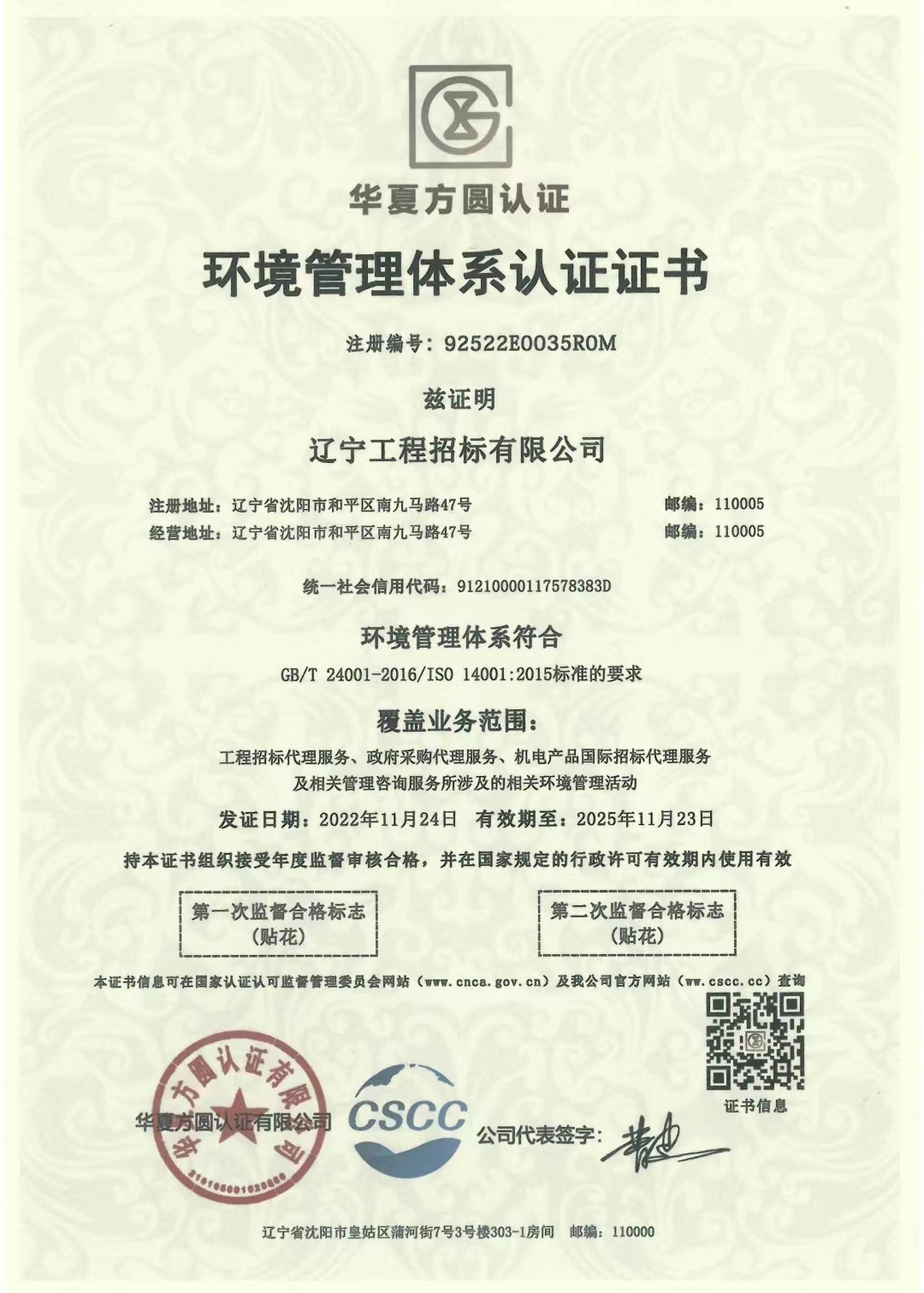 【概要描述】 近日,辽宁工程招标有限公司顺利通过《ISO 9001:2015标准质量管理体系》、《ISO 14001:2015标准环境管理体系》、《ISO 45001:2018职业健康安全管理体系》认证审核并获得证书,标志着公司在项目执行质量、内部管理水平和市场竞争力等方面同步取得重大提升。
