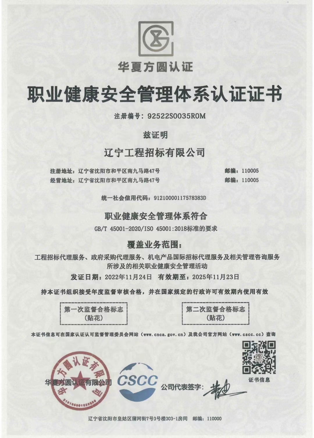 近日,辽宁工程招标有限公司顺利通过《ISO 9001:2015标准质量管理体系》、《ISO 14001:2015标准环境管理体系》、《ISO 45001:2018职业健康安全管理体系》认证审核并获得证书,标志着公司在项目执行质量、内部管理水平和市场竞争力等方面同步取得重大提升。