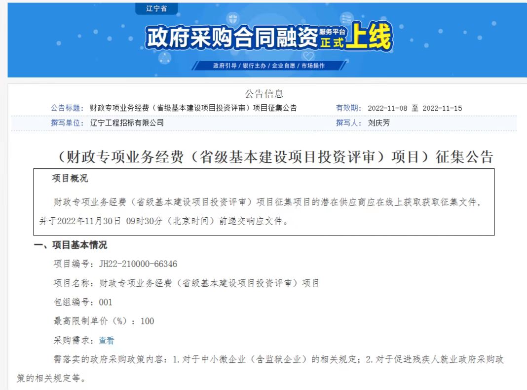 辽宁工程招标有限公司受辽宁省财政厅的委托,代理的“专项业务经费(省级基本建设项目投资评审)项目”采购工作圆满完成。该项目是辽宁省首个委托社会代理机构实施的省本级框架协议采购项目,对于全省框架协议采购工作具有引领示范作用。